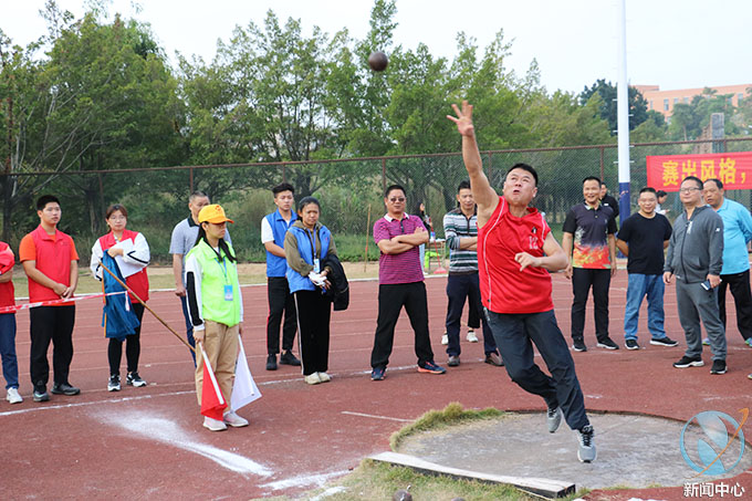 12月6日,我校在田径场举办第十四届校运会男子丁组铅球比赛(教工中年组)。