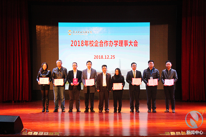 随后,大会对2017-2018学年在校企合作工作中表现突出的中兴通讯股份有限公司等8家合作单位和邱华盛等8名企业个人进行表彰。唐副主席分别为校企合作先进单位和先进个人颁发牌匾和荣誉证书。