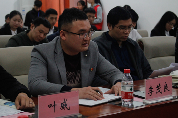 河源市卫生学校团委书记李茂良汇报工作