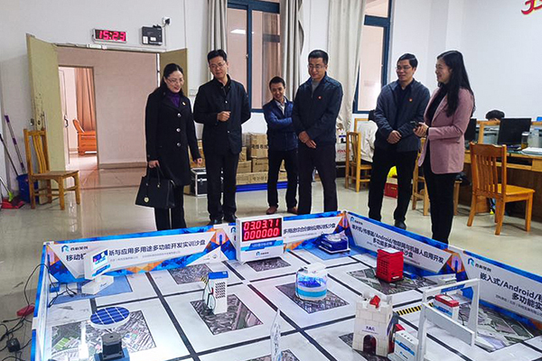 调研期间,在校团委陈晓峰书记、电子与信息工程学院杨黎院长的陪同下团市委书记周鑫一行参观了我校各大实训室,了解了我校实训活动室的各项软硬件设施的建设情况以及近年来社团实践的成效。