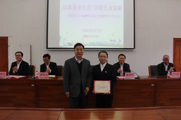 会上通报了继续教育学院2018年招生贡献奖表彰决定、成人教育优秀管理奖表彰决定和最佳工作执行力奖表彰决定,并现场为获奖者颁发荣誉证书。