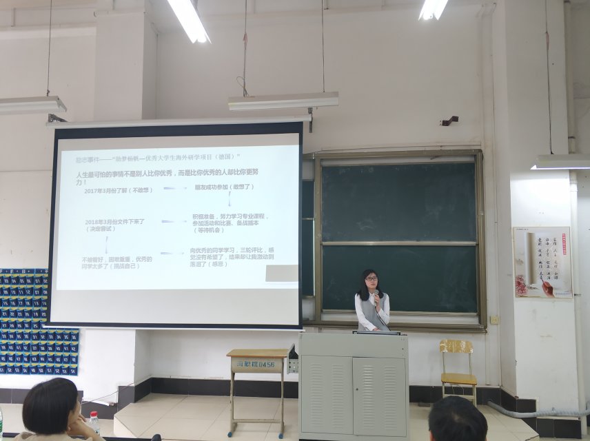 3月26日下午15:00,“助梦扬帆海外研学项目”分享会在教学楼D208举行。此次分享会分别邀请了冯芯媚、叶海怡两位参与者为200多名家庭经济困难学生讲述了德国行的所感所悟。冯芯媚,我校机电工程学院2018届工业设计专业毕业生,她曾获国家奖学金、励志奖学金、优秀学生奖学金一等奖三次,她作为全校唯一一名学生代表,代表我校参加了首届广东省“助梦扬帆”优秀大学生海外研学项目。叶海怡,工商管理学院2018届工商企业管理专业毕业生,在校期间曾获得国家奖学金、励志奖学金、优秀学生奖学金一等奖两次、优秀学生奖学金二等奖一次,代表我校参加了2018年的广东省“助梦扬帆”优秀大学生海外研学项目。出席本次分享会的嘉宾有学生工作处的吴紫苑科长和各学院的辅导员代表等。