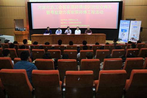 我校继续教育学院、工商管理学院、河源市乡村振兴学院、客家菜师傅培训学院有关负责人及第二届客家菜师傅培训班全体学员参加了典礼和活动。河源电视台、河源日报、河源晚报等新闻媒体记者对活动进行报道。