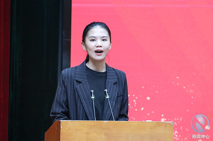 17级物流管理2班的肖翊作为在校生代表发言,她回忆起了与各位学长学姐们的美好校园生活,感恩学长学姐们的关怀, 代表在校生们送上了诚挚的祝福,祝愿师兄师姐前程似锦!