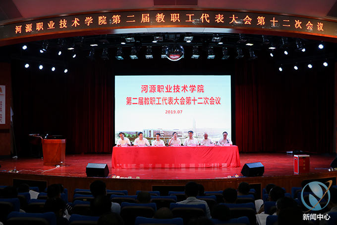 7月9日下午,我校第二届教职工代表大会第十二次会议在艺术楼演播厅召开。我校党委书记韦荣、校长陈德清等校领导及全体教职工代表出席了本次会议,会议由副校长赖小景主持。