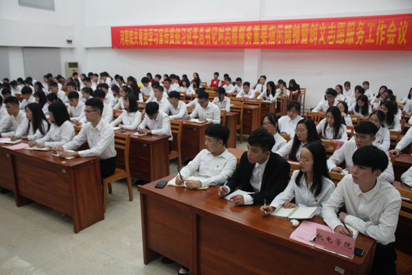 为深刻学习领会习近平总书记对志愿服务重要指示精神的丰富内涵,深刻学习领会新时代志愿服务的使命任务和实践要求。9月11日,我校于行政楼C108举行“学习贯彻习近平总书记志愿服务精神暨创文志愿服务工作”会议。校团委全体人员、各基层团组织、志愿服务组织学生骨干参加此次会议。