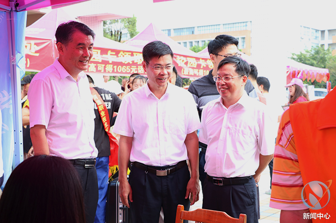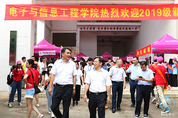 上午9时,我校党委书记韦荣、校长陈德清等领导走访各迎新报到点,看望慰问新生和家长。在走访过程中,学校领导逐一深入各二级学院迎新工作点,详细询问各个学院的报到情况,听取各个二级学院的迎新工作汇报。