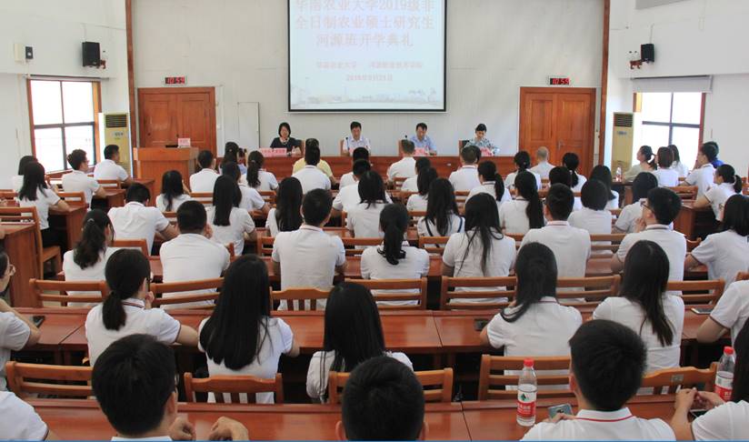 9月21日上午,华南农业大学2019级非全日制农业硕士研究生河源班开学典礼在行政楼C108会议室举行。华南农业大学研究生院、经济管理学院有关领导、老师,我校党委委员、副校长王小宁、继续教育学院有关老师以及华南农业大学2019级非全日制农业硕士研究生河源班74位新同学参加了开学典礼,继续教育学院负责人李文萍主持开学典礼。