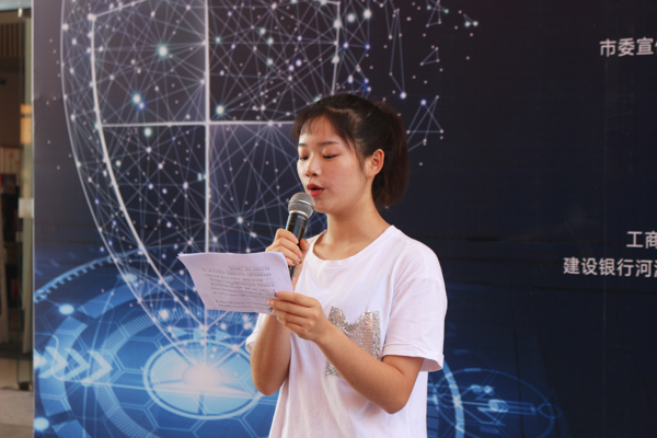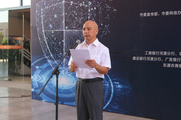 活动在河源晚报主播汉青介绍关于网络安全的情况中拉开了序幕。接着,学生代表林惜云上台发言,她表示,为营造健康和谐的网络舆论环境,坚决抵制与社会公德和中华民族优秀传统美德相背离的不良信息,提高自身文明修养,争做有高度安全意识、有文明网络素养、有守法行为习惯、有必备防护技能的“四有”中国好网民。随后,中国人民银行河源市中心支行副行长李焕明上台发言,他表示网络安全不仅事关国家安全和国家发展,也直接关系到每一个网民的切身利益。同时指出,要让互联网这个“最大变量”成为“最大增量”。