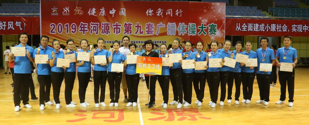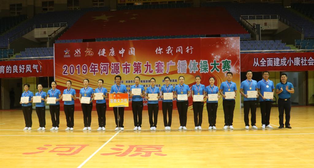 9月27日晚上,2019年河源市第九套广播体操大赛在市体育馆举行,我校代表宣教文卫线参赛并荣获线口组特等奖。