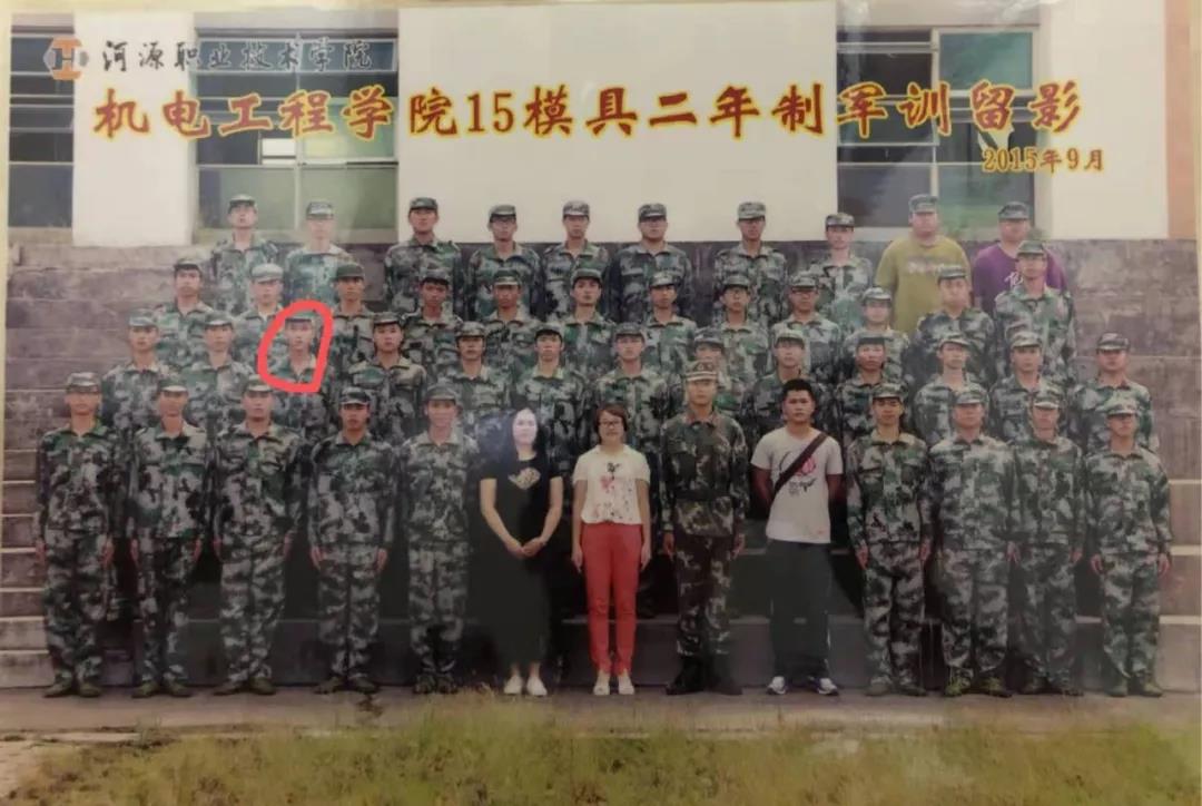 杜铸剑在学校军训期间的合影(红圈位置为杜铸剑同学)