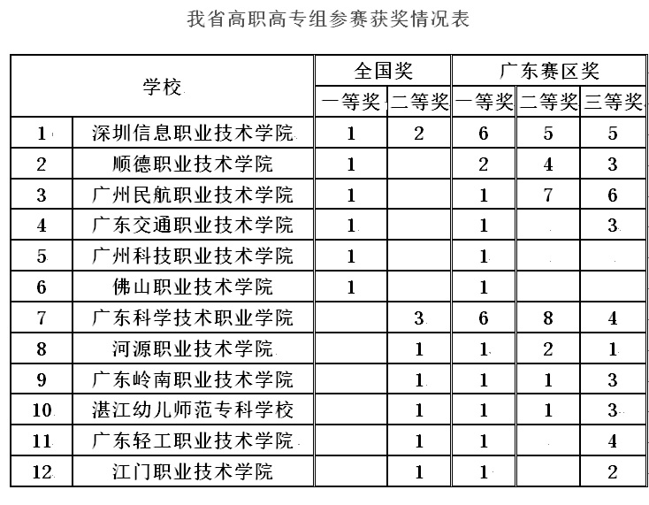 省教育厅委托中山大学组织开展全国大学生数学建模竞赛广东省分赛。2019年全省共有96所高校3185支代表队伍共计9515位选手报名参赛。成功参赛2432支本科队伍,324支高职高专队伍,总计2756支队伍,8238人完成赛事。共评出本科组一等奖218项,二等奖389项,三等奖608项;高职高专组一等奖29项,占成功参赛队伍的9%,二等奖51项,占成功参赛队伍的15.7%,三等奖81项,占成功参赛队伍的25%。我校派出10支队伍参赛,张万浩、曾恩如、李萍萍队获得省一等奖,唐锦礼、王青青、邓文玉队,彭梦珍、吴晓琳、郑智维队获得2个二等奖;黄颖、林志妍、黄伊淇队获得三等奖。下面是广东赛区参赛及获奖情况,以及广东赛区获得全国奖的学校的获奖情况。