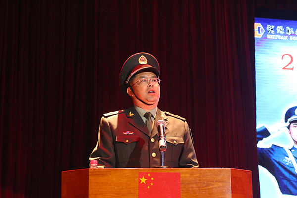 我校党委委员、人事处处长黄建华为大队长、教导员、副大队长授臂章