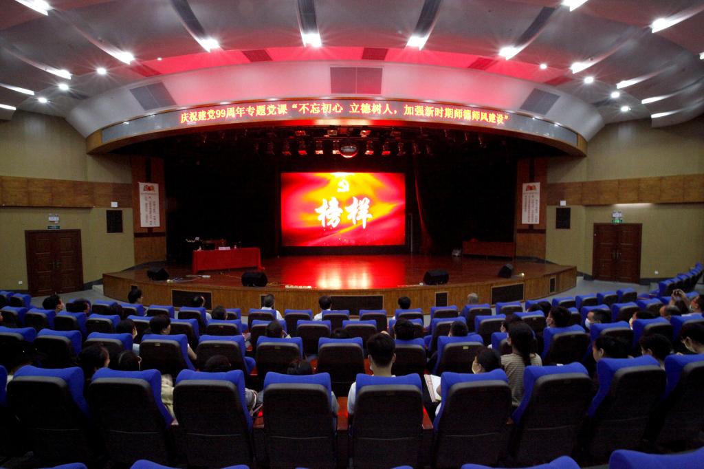 庆祝建党99周年专题系列活动分三个流程:重温入党誓词词,张国勇副校长专题党课,观看党员模范人物事迹视频。张国勇副校长说,初心使命,是党员的根基,违背初心和使命,将丧失自我革命精神。改变党的性质和党的颜色,则失去民心。不忘初心、牢记使命,不是一阵子的事,而是一辈子的事,因此我们必须把它作为加强党的建设的永恒课题和终身课题,并常抓不懈。在专题中,张国勇副校长主要分两大点去展开:一、作为党员,应该如何加强修养和党性?首先要充分领会党性精神要旨,就如“房间要经常打扫,镜子要经常擦拭”一样,党员同志们要对照检查,自我剖析,真扎实干,行为要经得起历史的考验。其次,用马克思主义中国化的新成果武装自己,面对生活中党员同志们的理论学习不够深入,浅尝辄止,张国勇副校长鼓励大家一定要与时俱进,坚持理论素养的提升和学习,凡事不能喊空口号,更不能做“不知有汉,无论魏晋”的桃花源中人。面对当前少数党员同志们存在的“四个化”问题——自我革命精神淡化,检视问题能力退化,自我批评弱化,生活骄奢腐化,张国勇副校长和告诫党员同志们要发扬斗争精神,敢于担当,立于不败之地,否则会贻误大事。二、立德树人,张国勇副校长殷切期望党员老师们铭记这个沉甸甸的责任和使命,对得起“逐梦人”“引路人”称谓,加强师德师风建设,办人民满意的教育。教师不但要有渊博的学识,更要有爱和责任。他勉励老师们干一行爱一行,热爱学校、工作和学生,坚守师德底线,调整心态,放下身段,用平等尊重方式方法与学生交流,让学生“亲其师而信其道”。张国勇副校长还和党员老师们一起学习《关于加强和改进新时代师德师风建设的意见》的文件精神, 同时也讲到今年的工作任务就是把师德师风摆在首要位置,建立健全考核制度。重温入党誓词,坚守初心,不计回报,向榜样学习,向榜样看齐,所有党员同志们一起观看了《榜样》,感受榜样的力量,砥砺前行。
