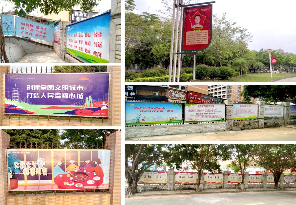 根据创文工作统一部署,6月下旬至7月6日,学校沿荟萃湖新建87个文明宣传广告栏,打造校园文明宣传长廊;更新“校园十星”和“社会主义核心价值观”灯柱海报45个;对学校西门至南门外墙处20个文明宣传广告栏进行了内容更新,全面提升提升校园文化品味,营造浓厚创文氛围。