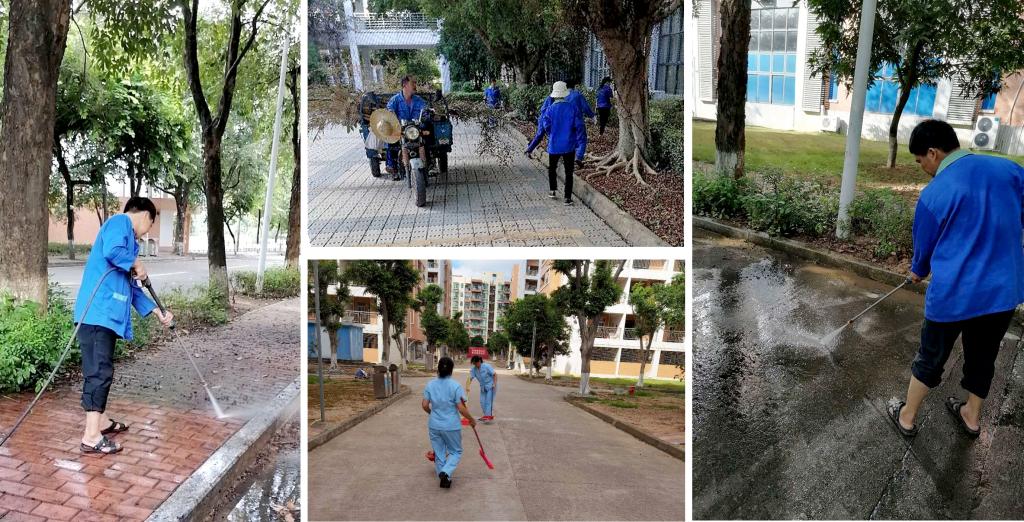 为了取得抗击新冠肺炎疫情的全面胜利,营造良好校园卫生环境,学校积极响应创文工作要求,6月15日-6月22日,由资产后勤处牵头,组织物业公司大力开展爱国卫生运动,彻底清理环境卫生,共建健康文明美丽校园。