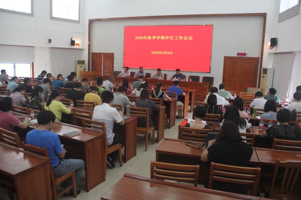 9月9日上午,学工处在行政楼C108召开2020年秋季学期学生工作会议,各学院副书记、全体辅导员、学工处全体以及资产后勤处、医务室负责人,保卫处、中竣物业公司负责人参加了此次会议。会议由学工处主要负责人戴佰阳主持。