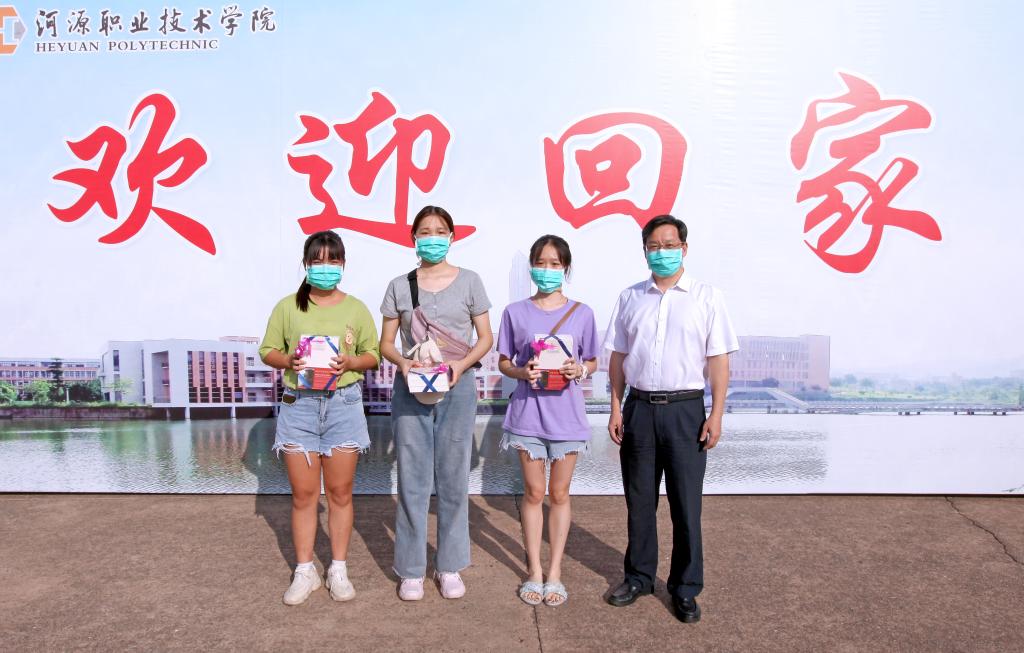 一大早,党委书记韦荣就来到学校东门,亲自迎接第一批返校学生,对阔别半年的学子们送上“欢迎回家”的祝福,并为前三名返校学生送上纪念品一一路遥的作品《平凡的世界》,勉励他们好好珍惜时间,努力学习,在平凡的日子里,做出不平凡的的成绩。校长陈德清及学校领导班子成员均到现场指导接待工作。