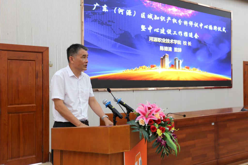 会上,陈德清校长在致辞中表示,我校近年来围绕服务地方、知识产权创造与服务等方面不断加强科技创新工作。此次联合佛山市海融科创知识产权代理事务所和合享汇智信息科技集团(广州)有限公司,成功申报广东(河源)区域知识产权分析评议中心,既是对我们前段工作的肯定,也是对我们的鞭策。中心的成立,将推动建立完善河源市重大经济科技活动知识产权评议制度,切实为区域产业提质增效和企业创新发展提供支撑,推动区域经济高质量发展。