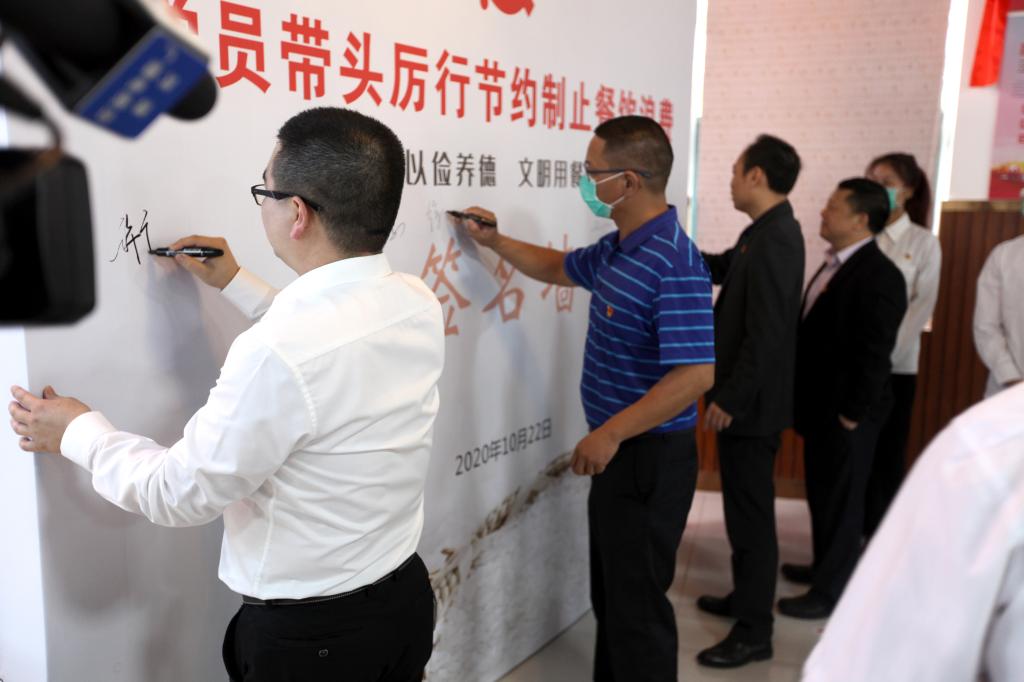 “党员带头厉行节约制止餐饮浪费签名墙”现场签名