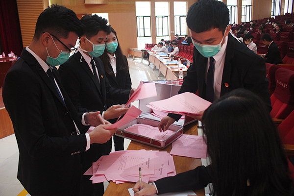 紧接着,各领导老师及学生代表有序移步至教学楼,分组讨论审议大会主席团候选人选举办法及名单。而后,返回图书馆报告厅进行河职院第七届主席团投票选举。