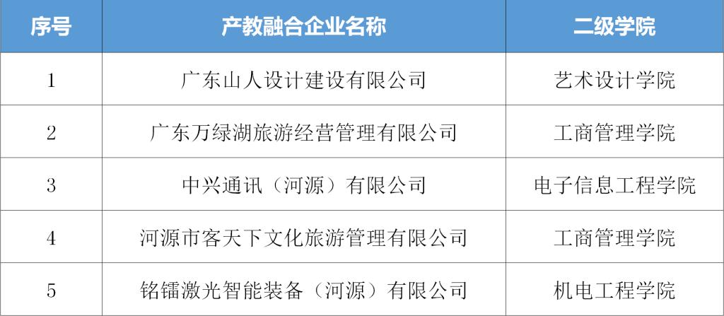 近日,广东省发展改革委发布《关于广东省第一批产教融合型企业入库培育的通知》(粤发改社会函〔2020〕1937号),我校推荐7家产教融合型企业,经各级专家评审,最终5家企业获广东省第一批建设培育产教融合型企业(详见下表)。