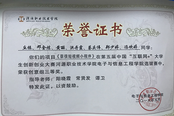 河源市青年创新创业大赛优秀奖