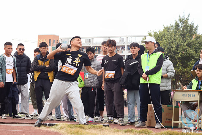 下午14点30分,男子甲组铅球预决赛正式开始,我校体育教育专业25名运动员参加本次比赛。运动员们站稳脚跟,依次投掷,单身将球贴近颈部或下颌,双手蓄力,步伐一转,从肩部用力将铅球抛出。在空中掷出一道完美的抛物线,落入沙池。