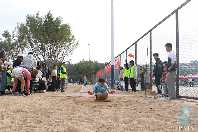 操场上彩旗招展,标语飞扬,下午14点30分,女子乙组跳高预决赛正式拉开了序幕。工商管理学院酒店管理专业的蔡和嘉左腿一蹬,右腿一抬,身子一跃而起,像一只飞燕般掠过横杆。这一套动作又连贯又干净利落,最终以1.19m的高度取得了此次女子乙组跳高第一名。