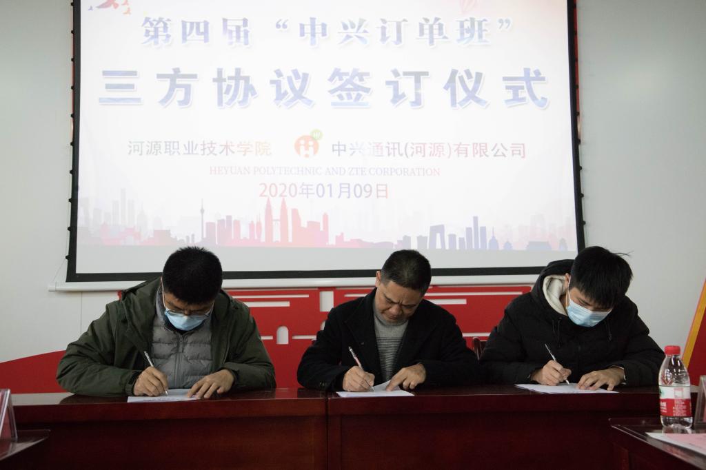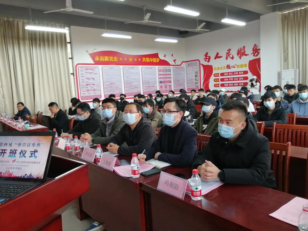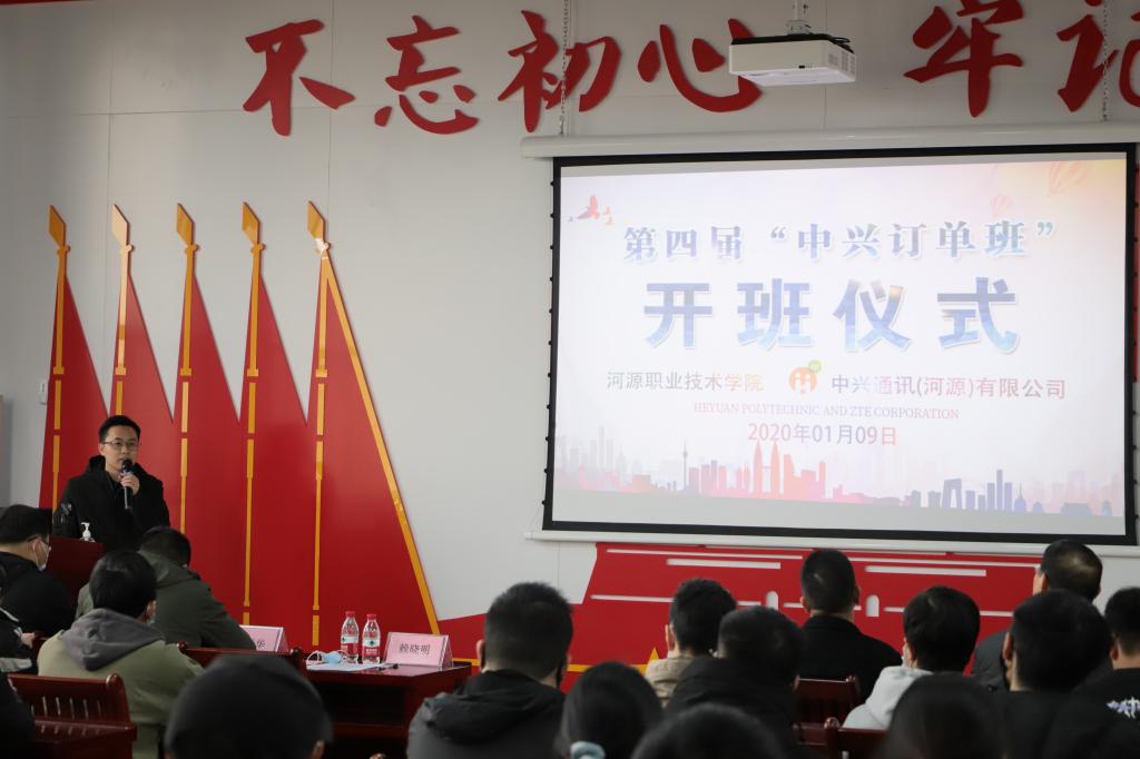 为加快发展我校现代职业教育,推动校企深度合作,提高人才培养质量。1月9日,我校于实训楼B306举行第四届“中兴订单班”开班仪式。中兴通讯股份有限公司人力资源部赖晓明部长、中兴通讯(河源)有限公司李新华部长、李庆琰部长等人与我校副校袁光华、电信学院院长王富宽、电信学院校企办高燕等相关负责人以及第四届“中兴订单班”全体成员参加了仪式。仪式由电信学院校企办主任高燕主持。