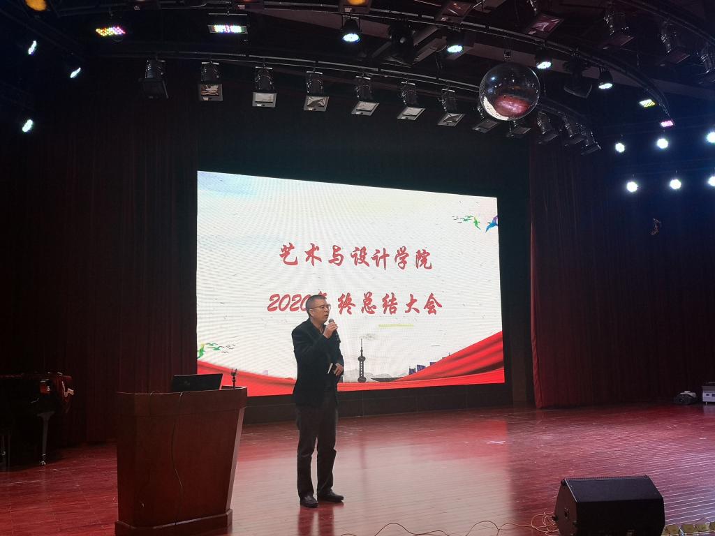 1月13日下午15:00,艺术与设计学院在演播厅组织召开了学院2020年终总结大会,学校张国勇副校长、艺术与设计学院全体教职工参加了会议。总结会主要分三个阶段进行,第一阶段各专业做年终总结汇报;第二阶段张国勇副校长讲话;第三阶段表彰先进,表彰的项目主要有四项,分别为:1.教科研先进个人;2.学生技能比赛优秀指导老师;3.专业建设先进个人;4.优秀党员及党务工作者。