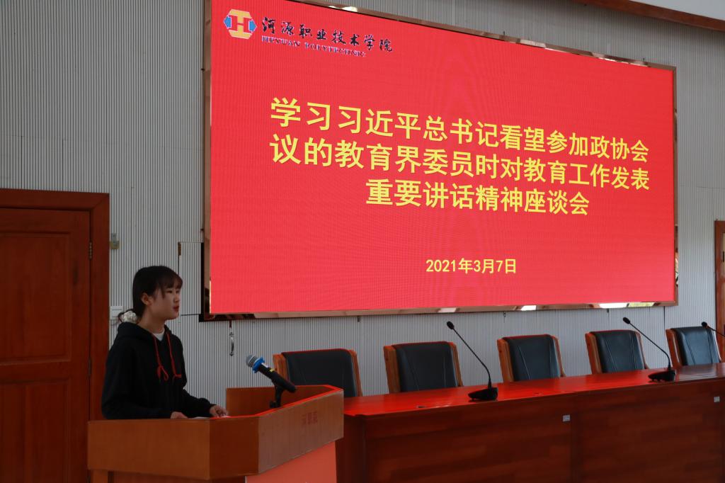 3月7日10点,学校团委同步组织召开学生代表座谈会,深入学习领会习近平总书记重要讲话精神,进一步凝聚思想共识,进一步明确青年学生肩负的时代重任,更加努力学习、更加勤奋工作,从现在做起,从本职做起,从点滴做起,努力为开创中华民族伟大复兴的辉煌征程贡献力量。