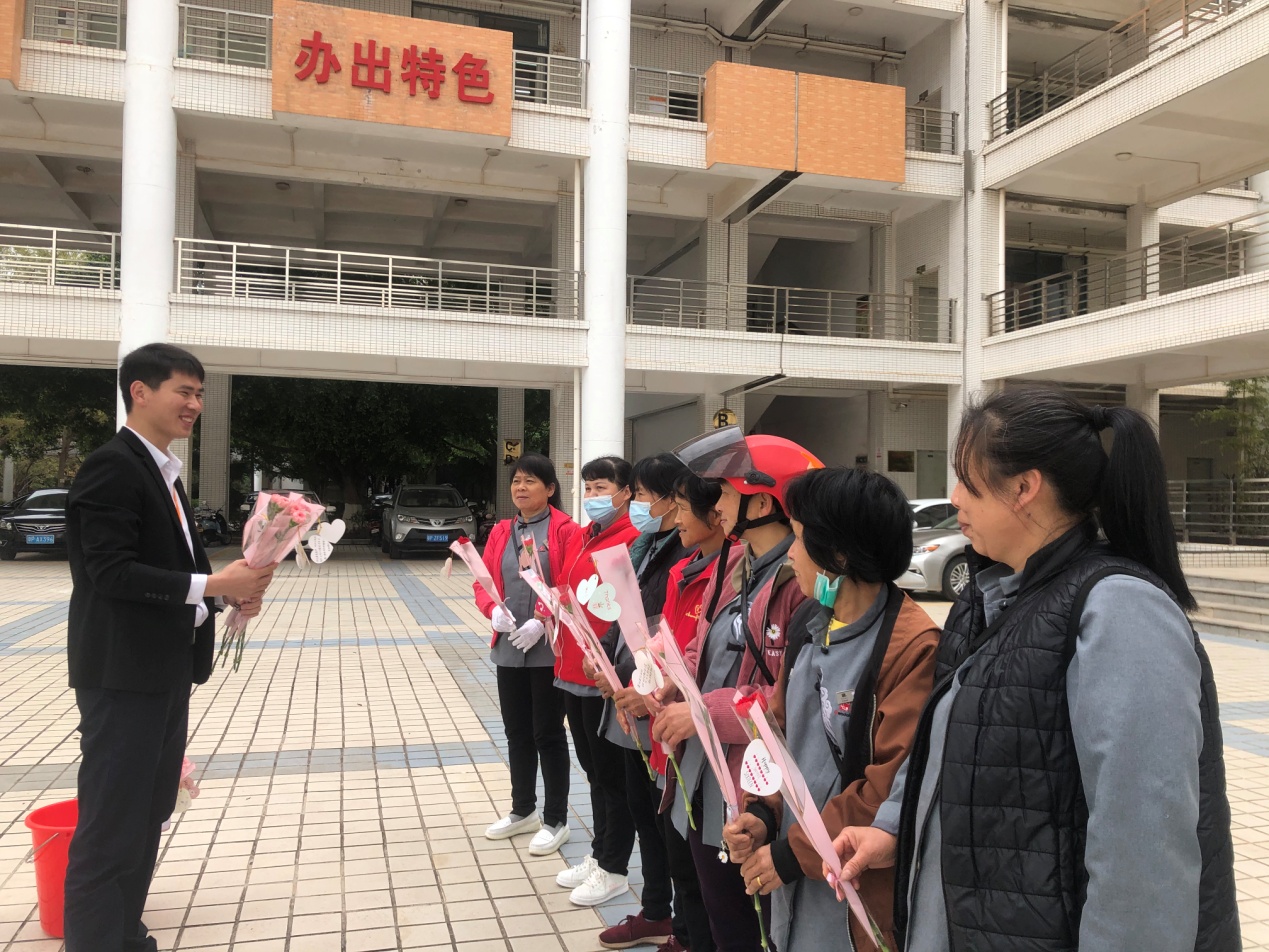 阳春三月,万物复苏,在“三八”妇女节来临之际,为向全校女同胞们送上温馨的祝福和深切的关爱,同时,让女同胞们感受来自学校物业的关怀和问候,金地物业mksports官方网站登录入口管理服务中心举行了“3.8鲜花赠女神”活动。