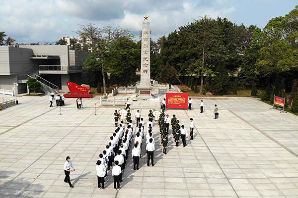 为庆祝中国共产党建党100周年,重温党的光辉历程,继承和发扬党的光辉传统和优良作风。4月1日上午,我校前往河源市烈士陵园开展“缅怀革命先烈,传承红色基因”清明烈士陵园扫墓活动。团市委副书记黎丹,河职院团委书记陈晓峰,团市委工作人员高志峰,河职院团委全体老师,国旗护卫队代表以及40位团员代表均参加了本次活动。