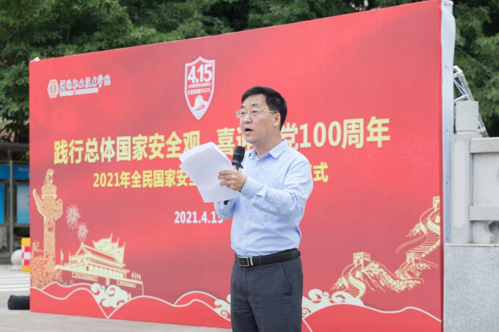 王小宁副校长介绍2021年全民国家安全教育日的主题是:践行总体国家安全观,统筹发展和安全,统筹传统安全和非传统安全,营造庆祝建党100周年的良好氛围。他指出,为践行总体国家安全观,营造庆祝建党一百周年的良好氛围,学校还将开展全民国家安全教育日专题讲座、征文比赛、知识竞赛、演讲比赛、主题班会等特色活动,充分调动广大学生的积极性、主动性和创造性,切实增强广大师生维护国家安全的意识和能力。