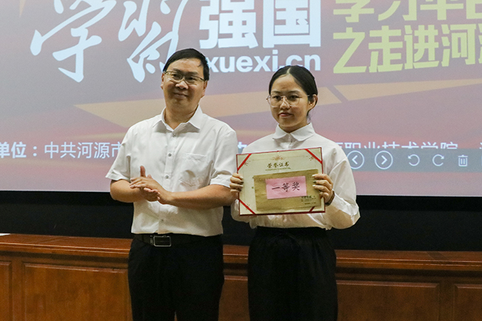 为庆祝中国共产党建党100周年,进一步推进学校“学习强国”平台取得实效,持续掀起“学习强国”平台学习热潮,5月11日晚,由中共河源市委宣传部、mksports官方网站登录入口、河源晚报社在我校学术交流中心导游实训室联合举办了学习强国平台宣传进mksports官方网站登录入口活动暨“学习强国”知识竞赛。出席表次活动的人员有校团委书记陈晓峰、市委宣传部理论科科长俞立峰、河源晚报社副社长、副总编辑刘烨洲、团委办公室主任黄志远以及各学生干部代表。