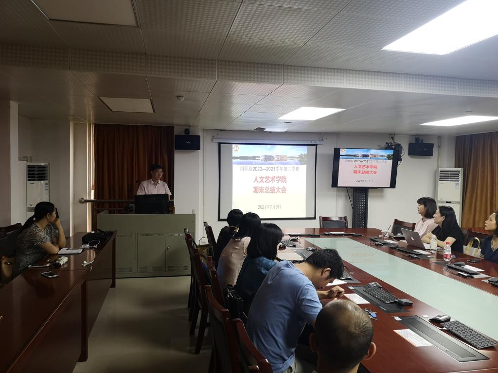 2021年7月6日14:30,人文艺术学院在行政楼B601召开了2020—2021学年第二学期期末总结会议,学校王小宁副校长、人文艺术学院全体教职工参加了此次会议。