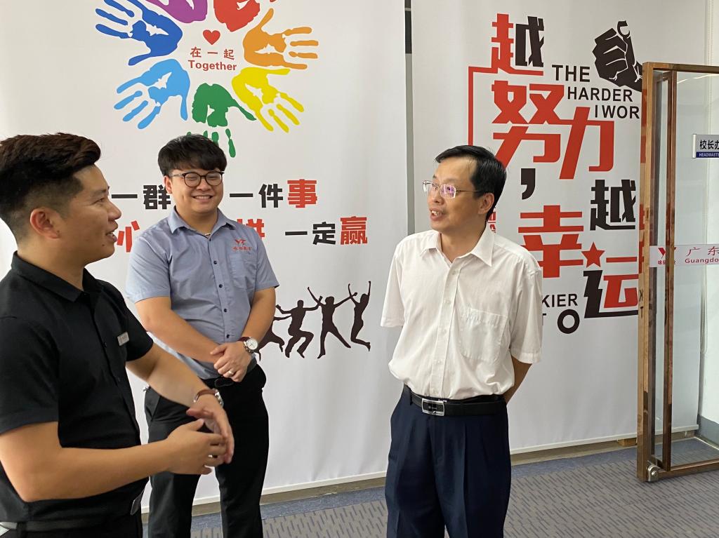 8月23日下午,我校党委书记韦荣率科研处何智聪处长、机电工程学院钟建坤院长、学工处柳晓夫副处长等一行6人前往咏拓教育培训中心、河源市车智慧汽车服务中心和深圳市金机一百汽车贸易有限公司等3家优秀校友企业走访。