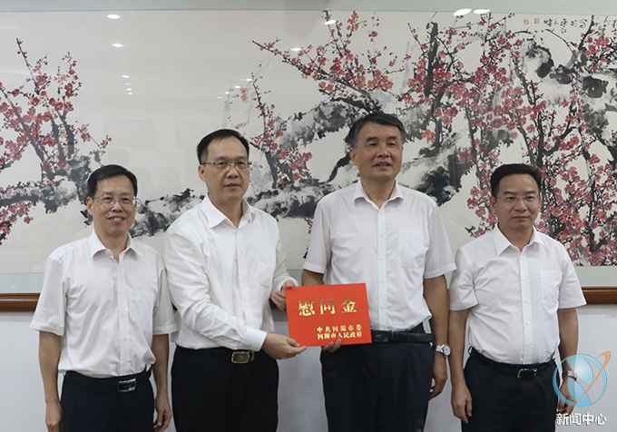 座谈会最后,政法委书记叶春球代表市委市政府为我校送上教师节慰问金。