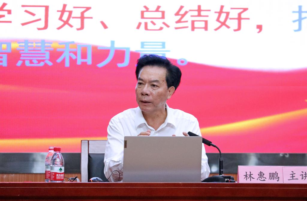 报告会最后,林惠鹏副校长表示,学习贯彻重要讲话是一项重要的政治任务,要把学习宣传贯彻总书记重要讲话精神作为党史学习教育的要点,同当前工作结合起来。
