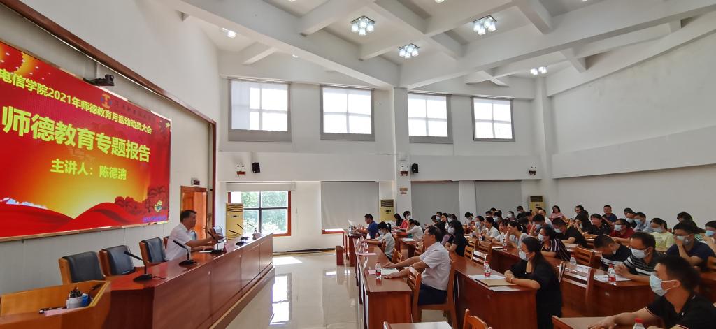 为深入学习习近平总书记在庆祝中国共产党成立100周年大会上重要讲话精神,深入贯彻落实党中央、国务院和省委、省政府关于全面深化新时代教师队伍建设改革工作的决策部署,进一步加强和改进新时代师德师风建设,根据《广东省教育厅关于开展2021年师德建设主题教育月活动的通知》及学校《关于开展2021年师德建设主题教育月活动的通知》的要求,2021年9月9月,电信学院在行政楼C108召开2021年师德教育月活动动员大会。