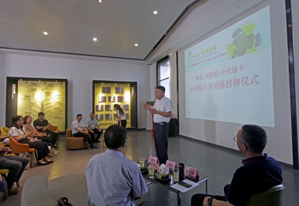 首先,双方团队前往灯塔盆地顺天镇的中兴绿丰农业科技有限公司进行挂牌,挂牌前校企双方进行座谈,座谈会上华南农业大学田兴国研究院介绍“1+1+N”高校服务乡村振兴共同体建设内容和建设的意义,我校陈德清校长介绍我校基本情况,同时表示会大力支持共建乡村振兴共同体这个项目,发挥属地院校的服务作用,中兴绿丰曾总介绍公司的发展现状和未来发展规划,感谢华农牵手本地高校河职院服务企业,助力乡村振兴。会后,校企双方举行了揭牌和种植基地实地走访。