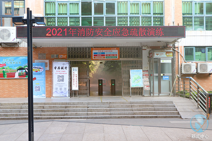 此次演练假想A1304宿舍成员因违规使用高功率用电器、A6210宿舍成员因吸烟引发火灾危及校园师生人身安全。