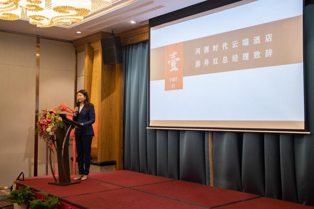 会议由旅游管理专业主任杨红霞老师主持,时代云端国际酒店游井红总经理致欢迎辞。会上,校方由杨红霞老师汇报专业群建设情况,向与会人员展示了近年来的校企合作成果;工商管理学院张颖副院长解读了教育部等五部门关于印发《职业学校学生实习管理规定》的通知和《广东省教育厅关于公布2021年高职院校学生实习安排备案结果的通知》,对校企合作的原则性问题作了明确说明;工商管理学院校企办曾惠华主任分享了旅游专业群“产教融合、校企合作”的典型案例,细述校企合作模式从1.0到4.0的发展历程。企业方则由佛山马哥孛罗酒店人事总监潘艳玲进行了“酒店招才、留才秘密”主题分享;由河源客天下人事经理梁晴苑汇报“国家现代学徒制人才培养模式”,推广产教融合合作模式。