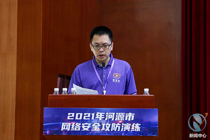 省公安厅网警总队副总队长黄春健发表讲话,他表示,当前网络空间已经成为各国博弈的重要战场和犯罪滋生蔓延的主要载体,事关群众切身利益、企业存亡、社会稳定和政治安全,此次演练就是贯彻落实习近平总书记关于网络安全与信息化工作系列重要讲话精神的重要举措,是检验河源市网络安全防护能力以及协同应对网络突发事件能力的有力措施。对此,他提出三点期望,一是落实等保制度,压实网络安全主体责任;二是认真总结归纳,形成本地特色工作模式:三是固化成功经验,打造可复制的演练模板。