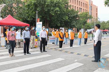 演练当天,王小宁副校长首先作演练检测前动员,他分析了当前国内外疫情防控的形势和压力,强调开展此次演练和检测的重要性,认为开展此次演练旨在检验《mksports官方网站登录入口大规模新冠病毒检测工作方案》的可行性和实操性,通过演练考察信息排查组、组织工作组、后勤保障组、宣传工作组、维稳安保组实战能力和需要提升优化的细节,通过演练和实际检测分析大规模核酸检测全过程、各环节工作开展的秩序、效率。随后,王小宁副校长宣布演练检测工作正式开始,全体志愿者到岗就位,参加演练检测师生员工有序参加演练、检测。