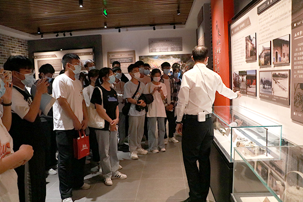 讲解员带领参观并讲解红色文化广场