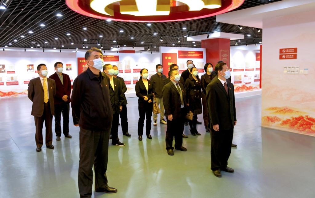 为深入学习贯彻习近平总书记“七一”重要讲话精神,推进党史学习教育走深走实,11月9日上午,我校全体校领导、各部门主要负责人以及学校党史学习教育领导小组办公室成员前往市档案馆参观“百年恰是风华正茂”主题档案文献展、“奋斗百年路 启航新征程”河源百年党史重要档案文献展,接受党史现场教育。