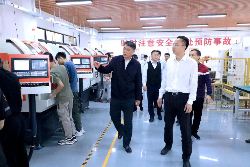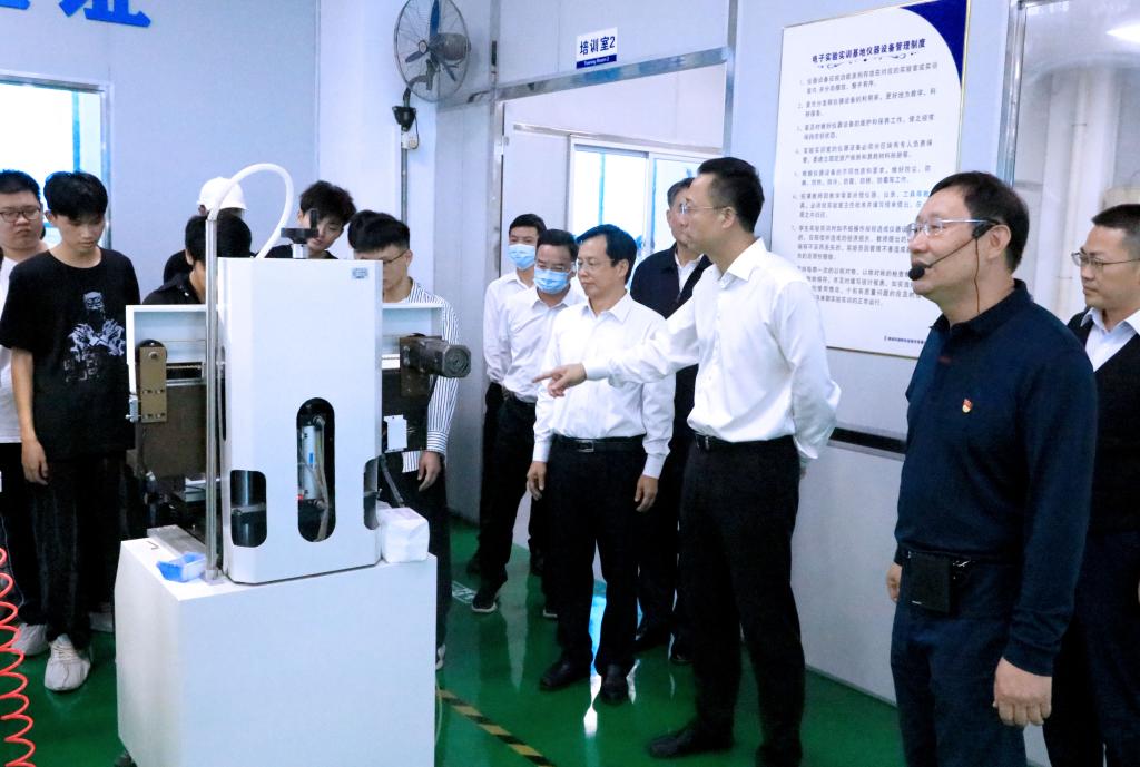 林涛深入到学校的继续教育学院、工商管理学院、电子信息工程学院、机电工程学院、食堂等地,详细了解学校的党建、教育教学、后勤管理等工作,实地参观了客家菜师傅培训学院、茶艺实训室、骆文冠艺术工作室、电子产品生产装配车间实训室等实训场所,并听取有关工作汇报。