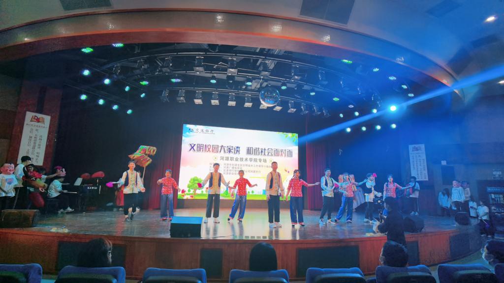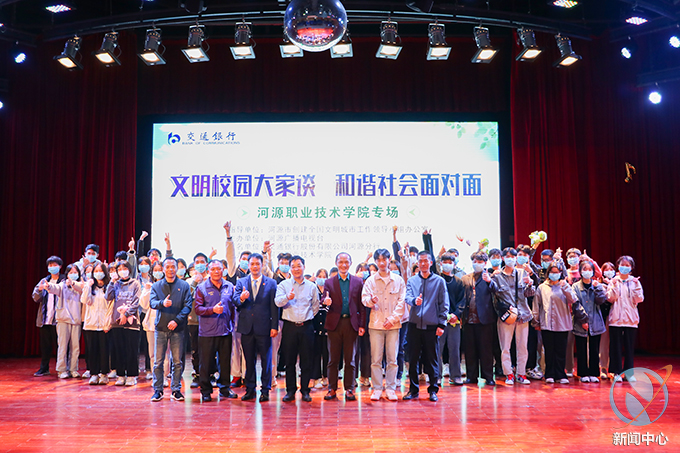 为全面提升师生的公民道德、职业道德、文明修养和民主法治观念。11月30日,我校于艺术楼演播厅开展“文明校园大家谈 和谐社会面对面”座谈会。河源广播电视台副台长甘露,交通银行股份有限公司河源分行副行长杨柱忠,河源广播电视台电视中心主任董涵,河源市志愿者协会会长张青,河源好人李红,我校党委委员、副校长王小宁,学生干部代表及融媒体中心委员代表参加了此次座谈会。座谈会由河源广播电视台主持人李国洋主持。